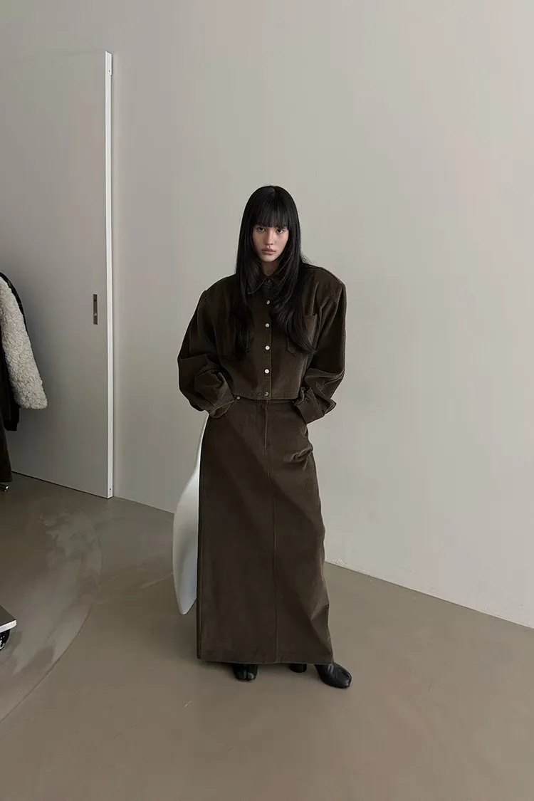 ♥︎ 11月韓國連線 ♥︎ 燈芯絨外套1+1長裙set(長裙)