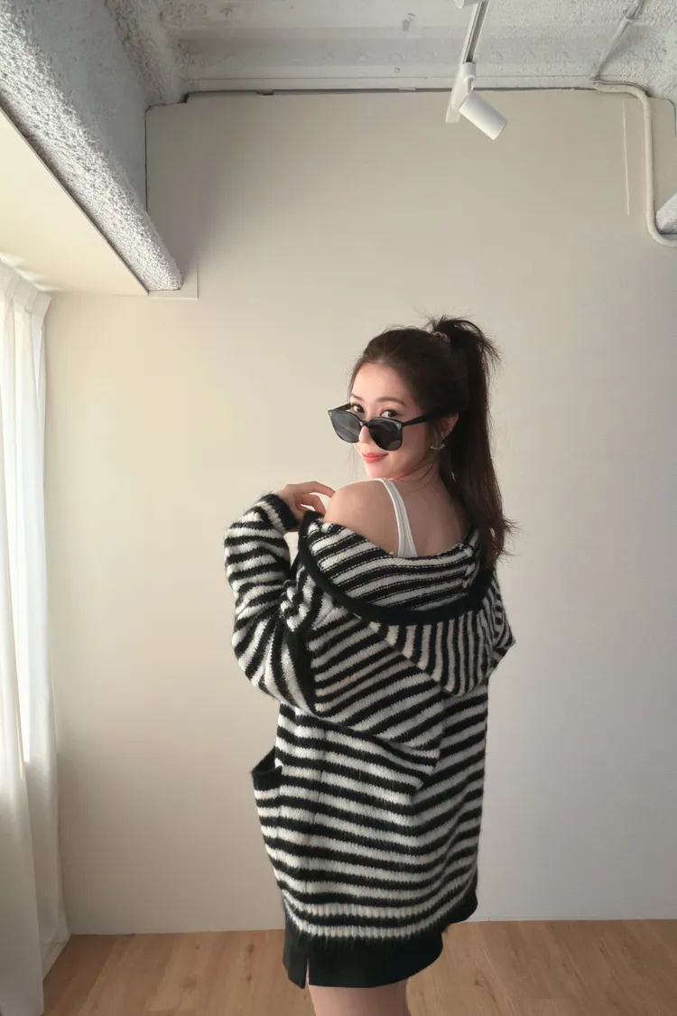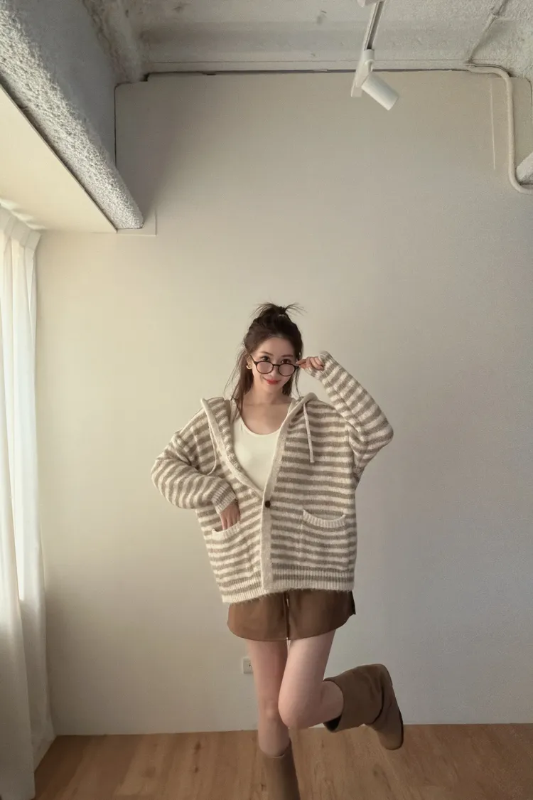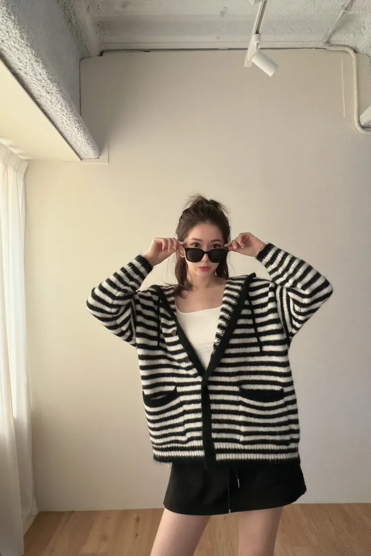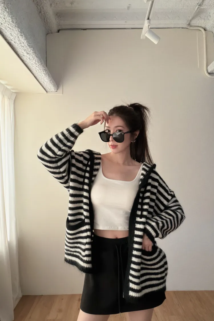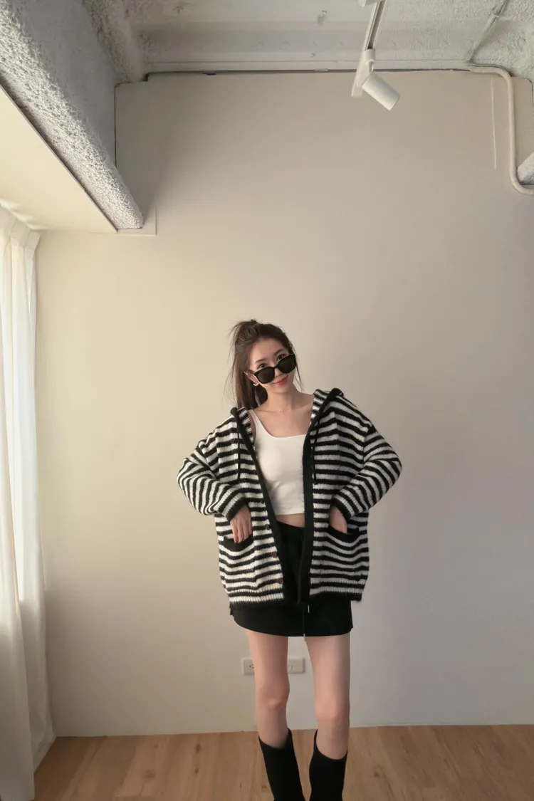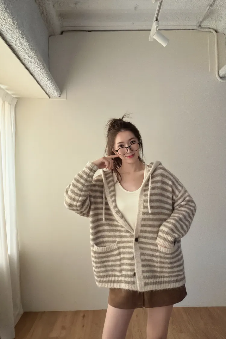 ♥︎ 11月韓國連線 ♥︎ 連帽條紋針織外套