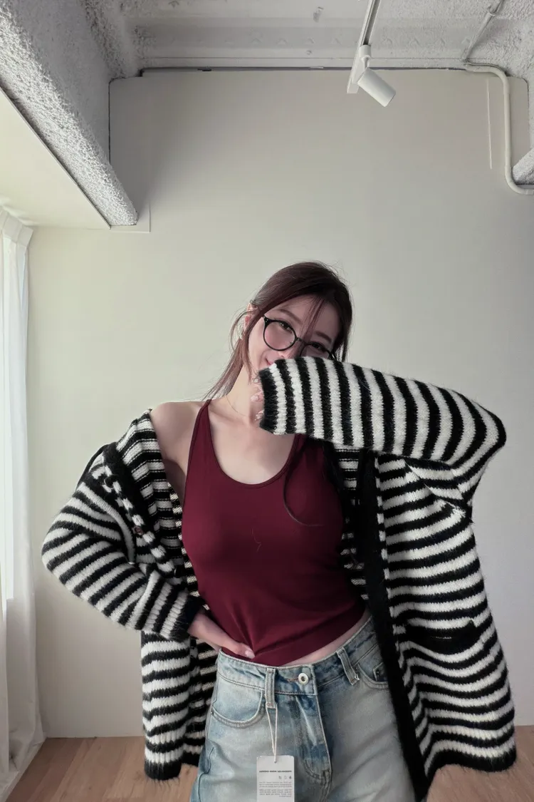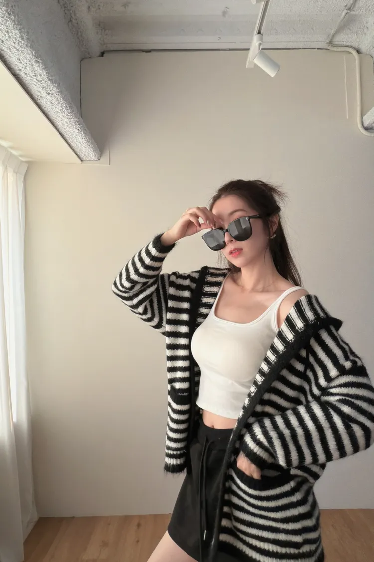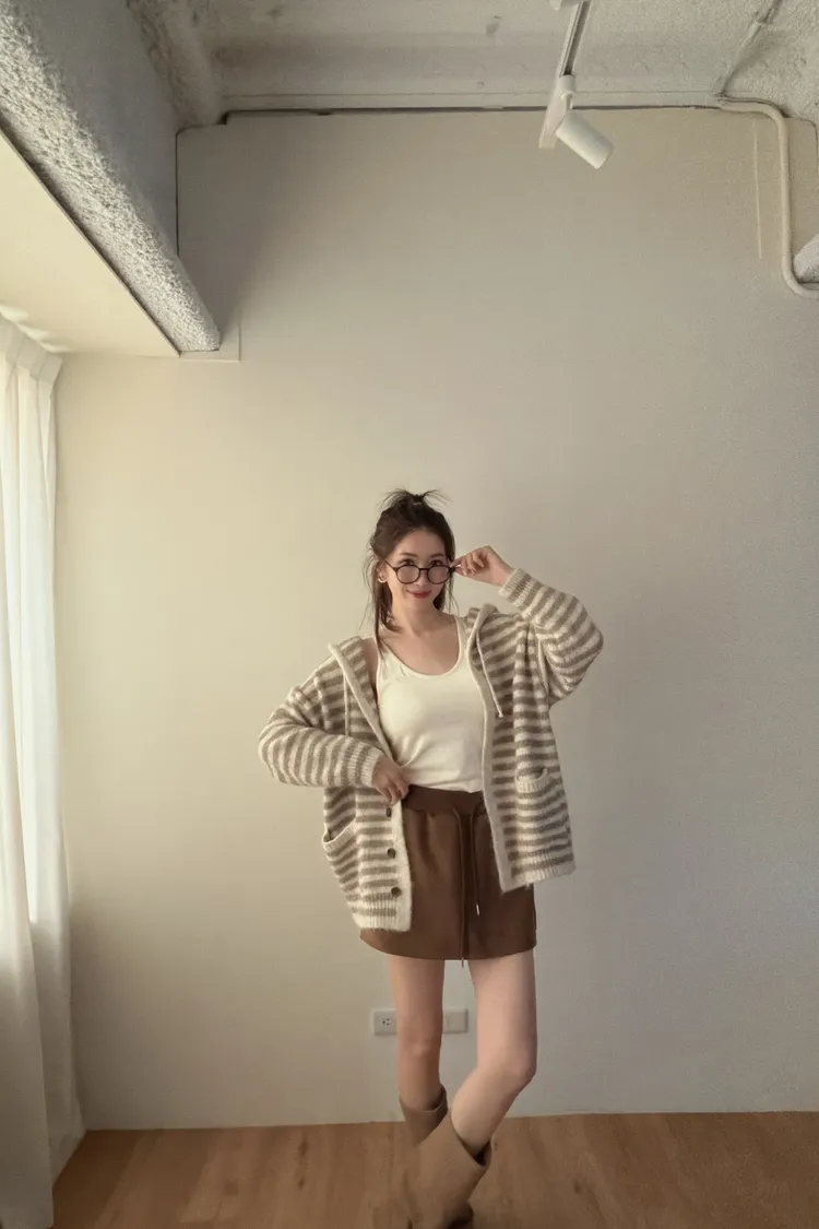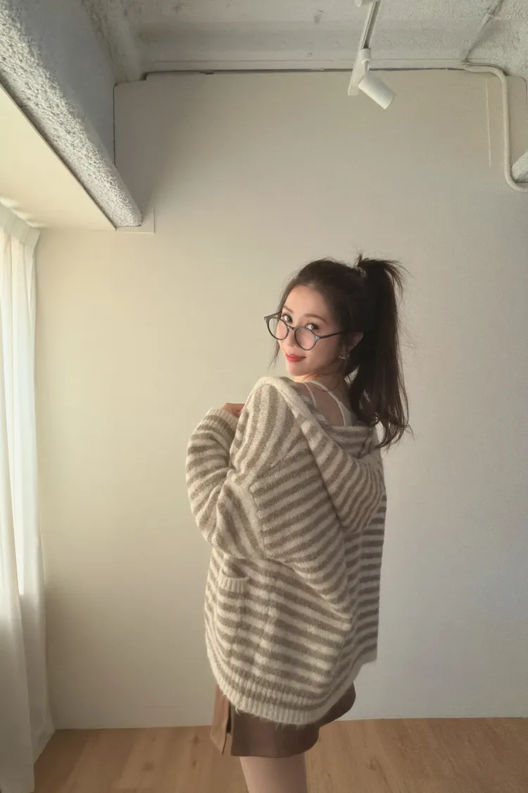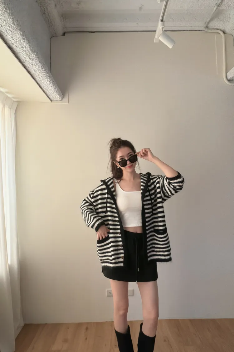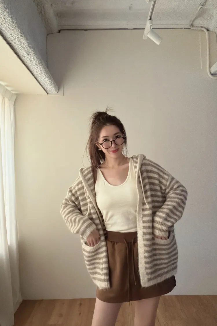 ♥︎ 11月韓國連線 ♥︎ 連帽條紋針織外套