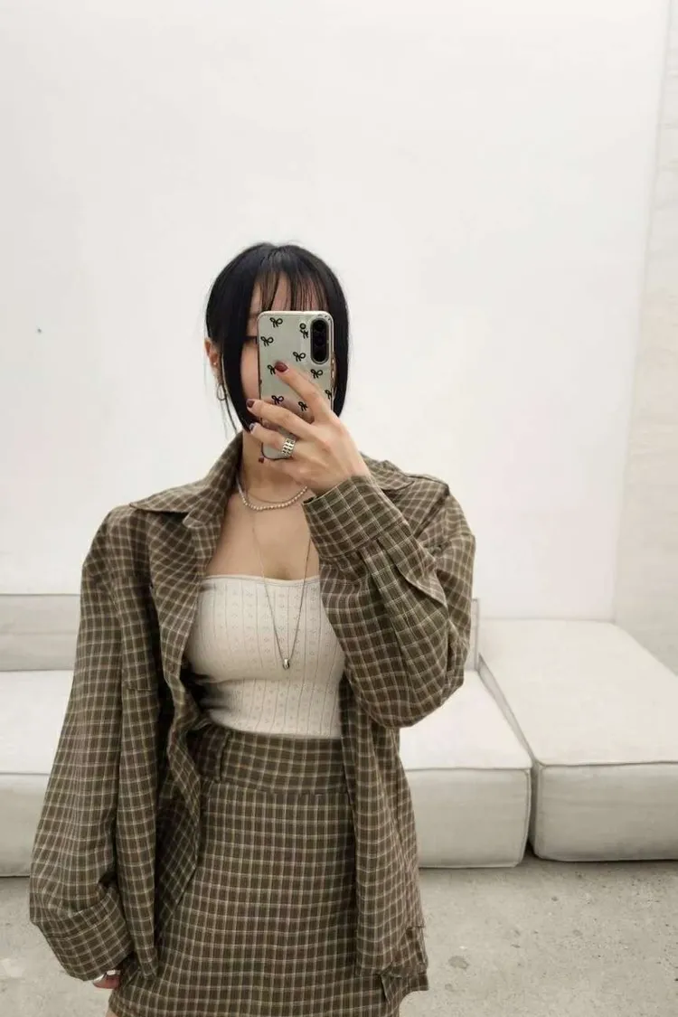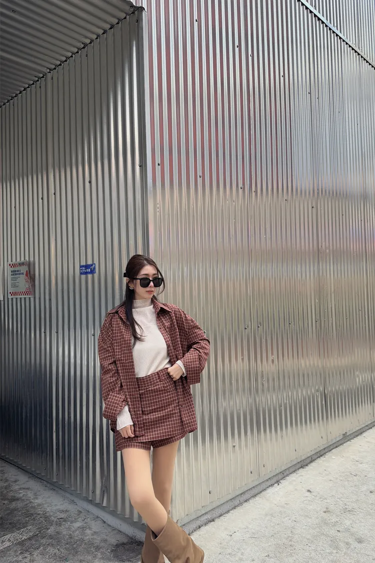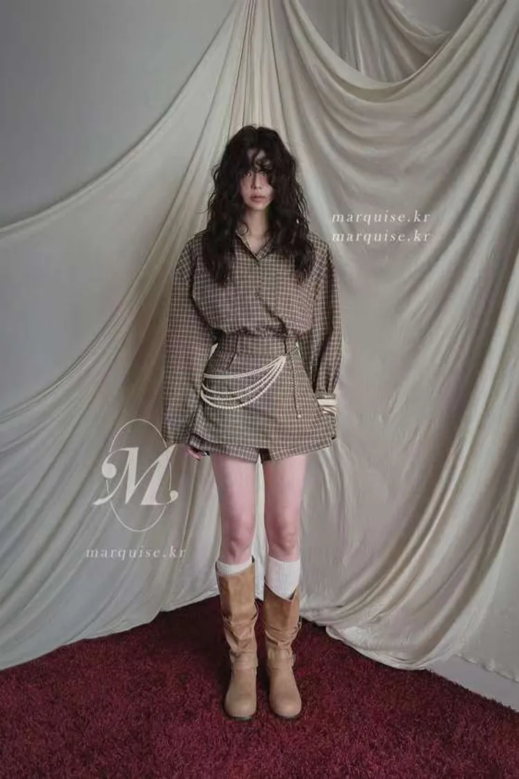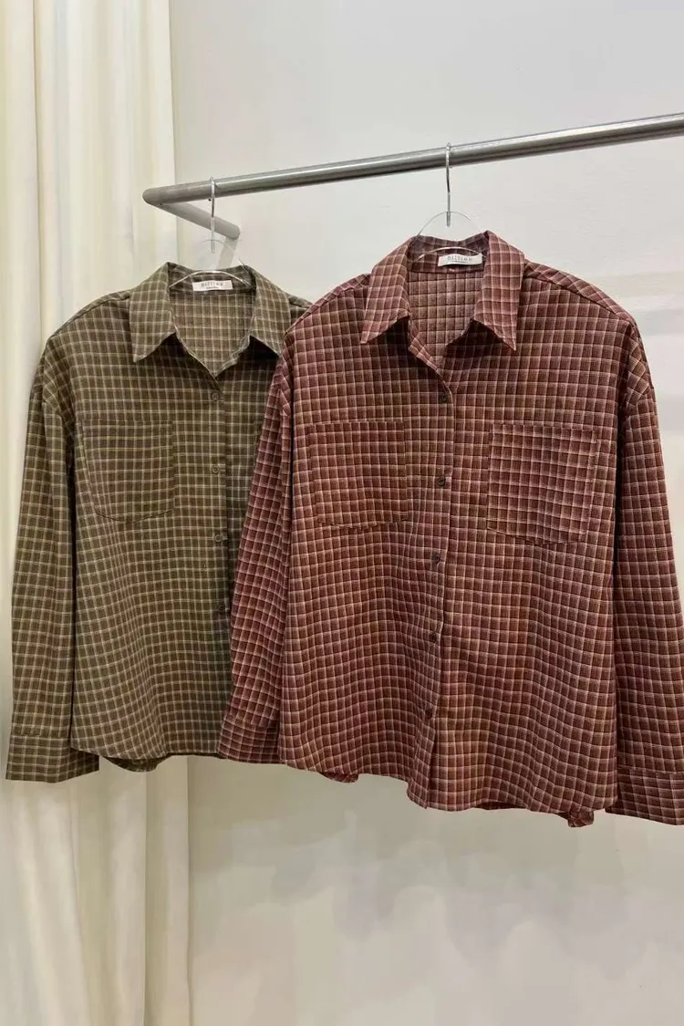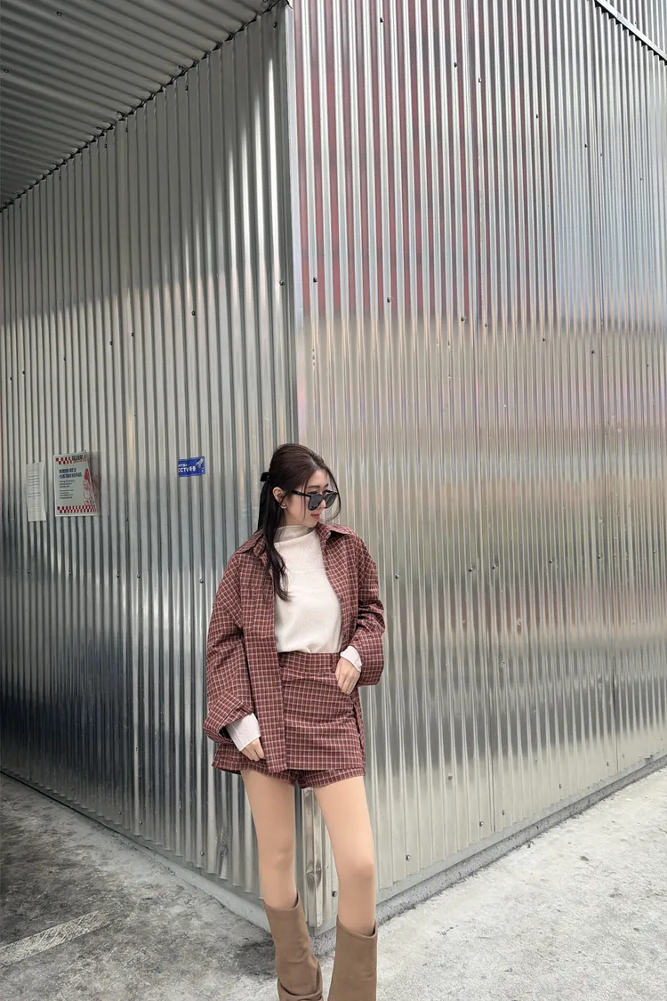 251108-1 ♥︎ 11月韓國連線 ♥︎ 復古格紋襯衫1+1短褲裙set(襯衫)