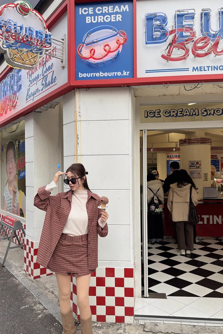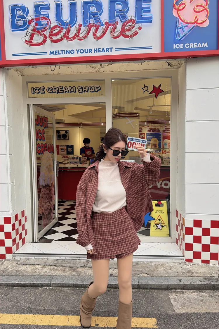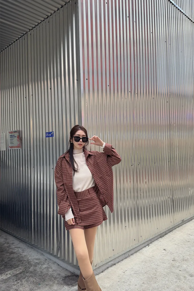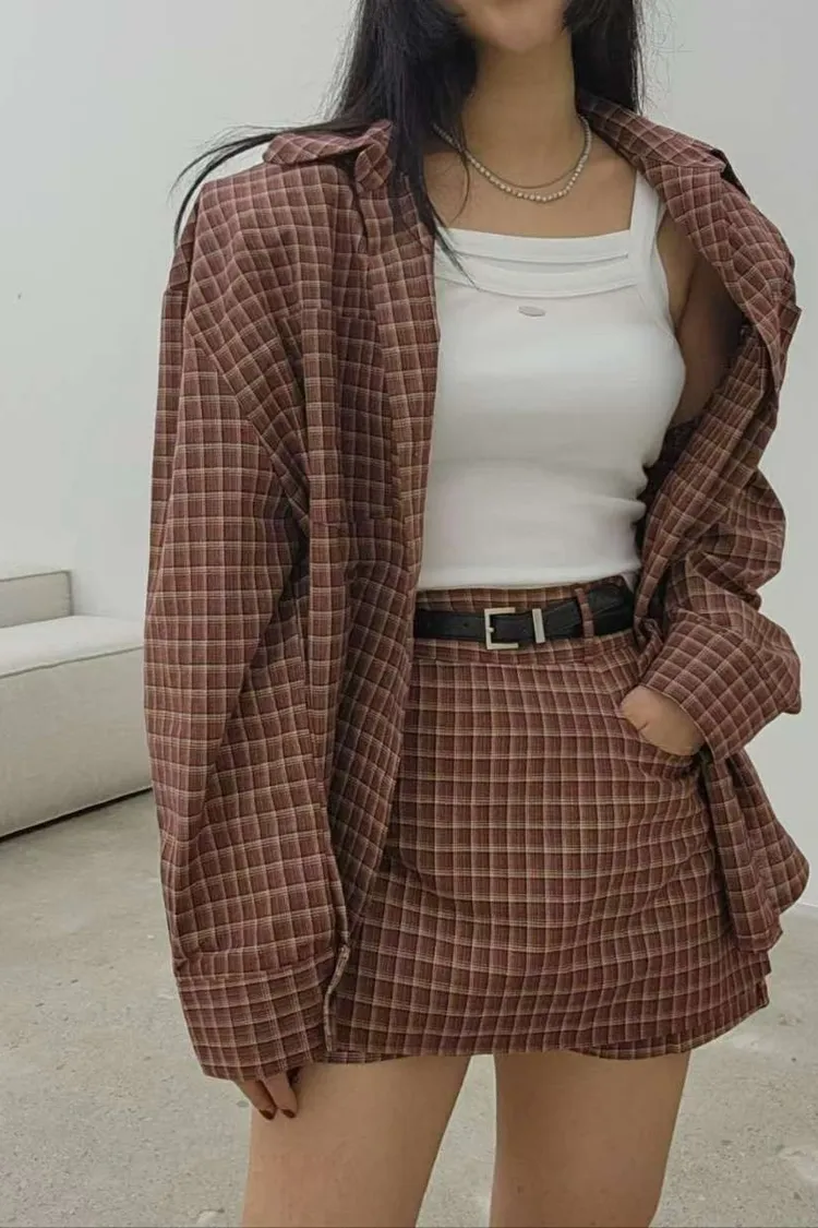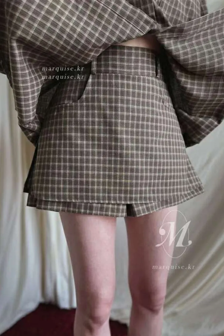 ♥︎ 11月韓國連線 ♥︎ 復古格紋襯衫1+1短裙set(短褲裙)