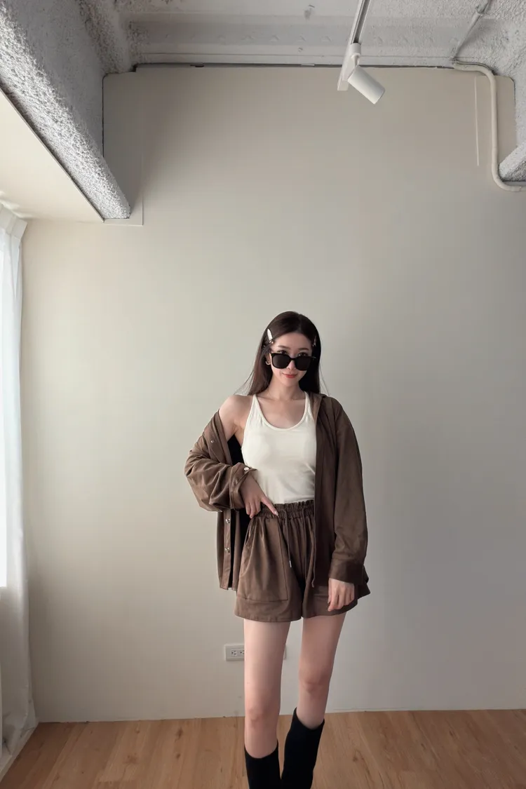 ♥︎ 11月韓國連線 ♥︎ 絨面襯衫3-way 套裝(短褲)
