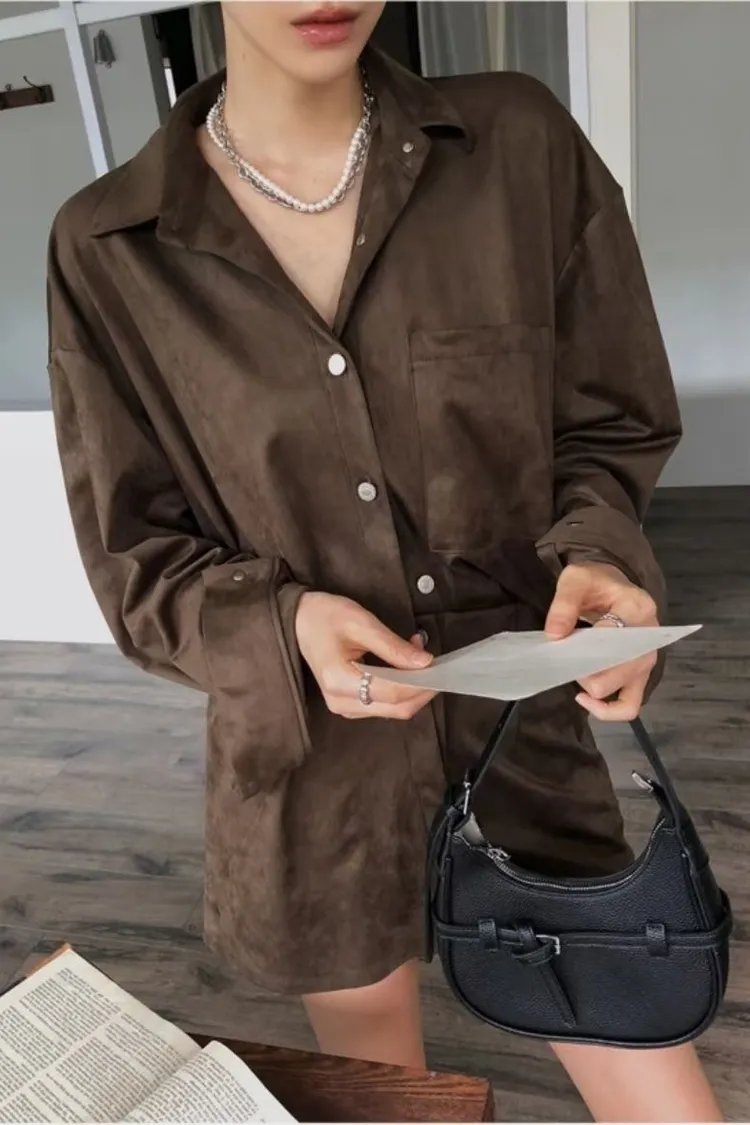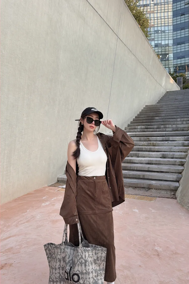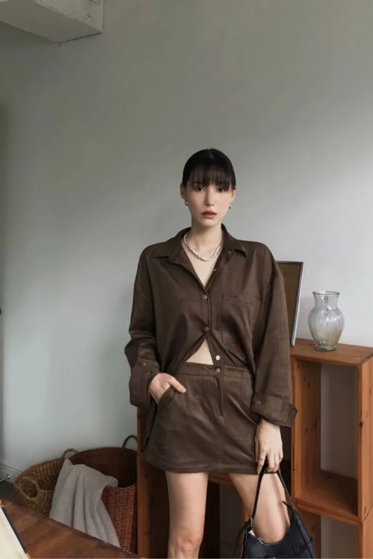 ♥︎ 11月韓國連線 ♥︎ 絨面襯衫3-way 套裝(長裙+短裙)