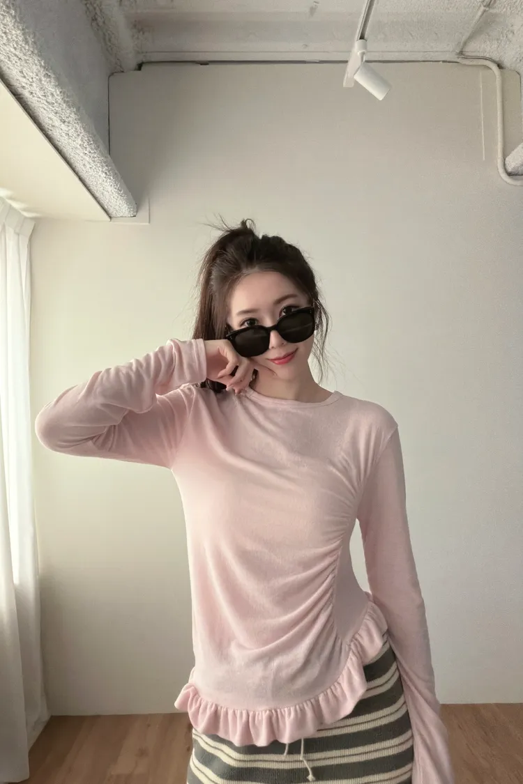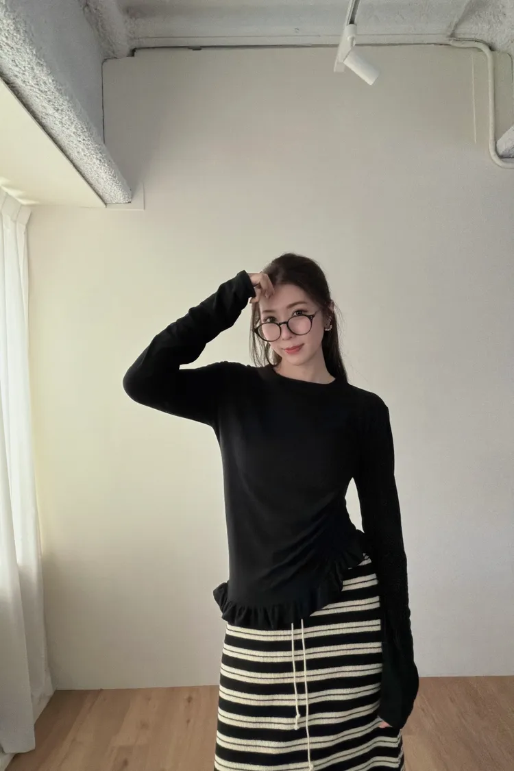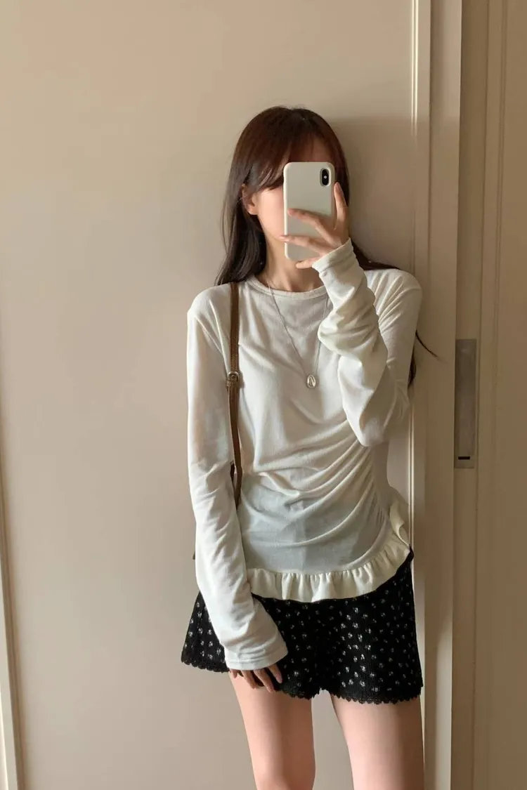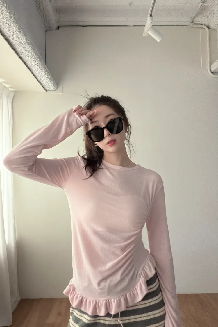 ♥︎ 11月韓國連線 ♥︎ 下擺斜邊荷葉微透上衣