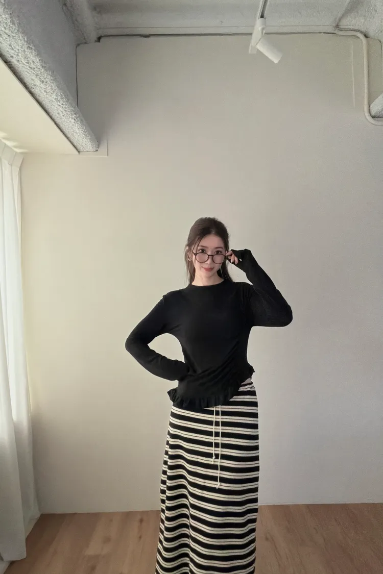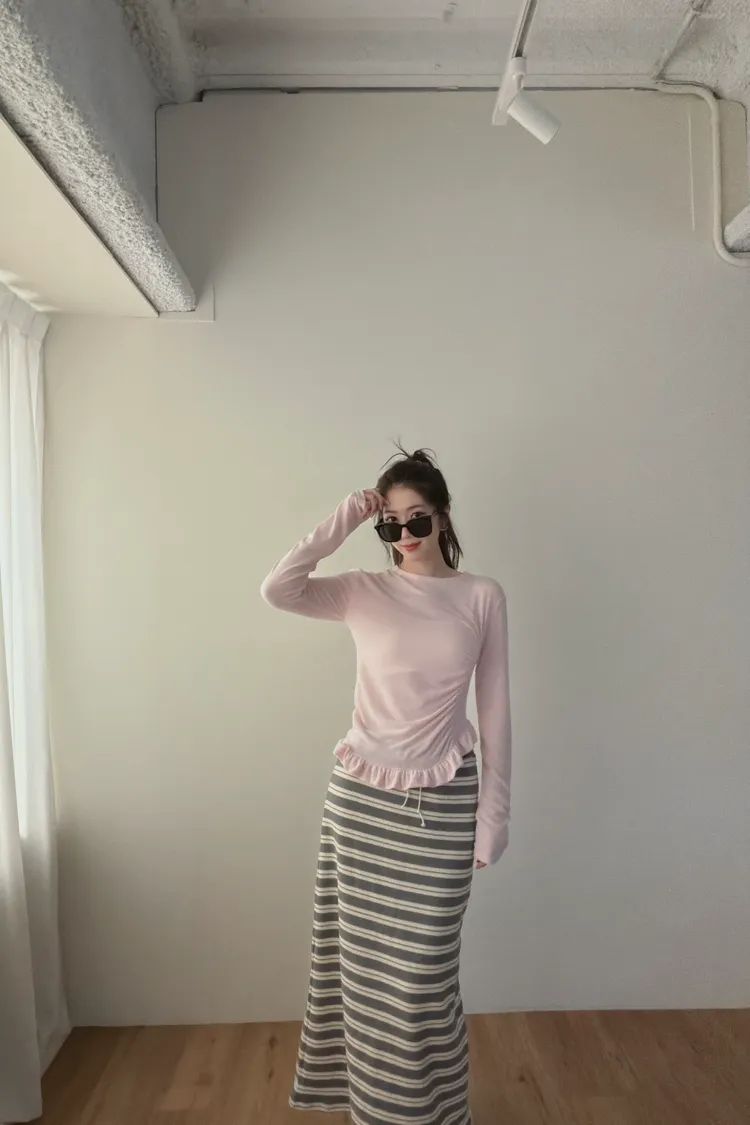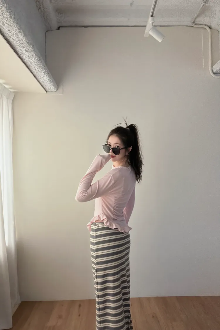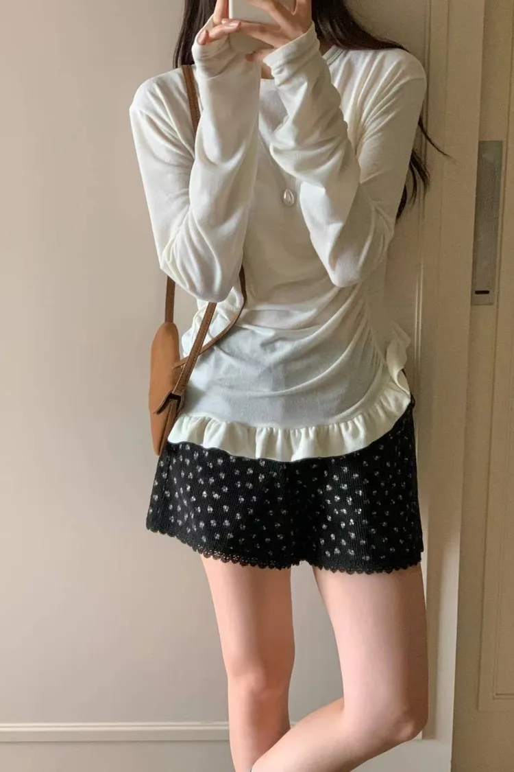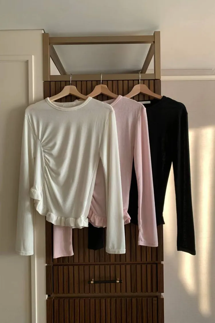 ♥︎ 11月韓國連線 ♥︎ 下擺斜邊荷葉微透上衣