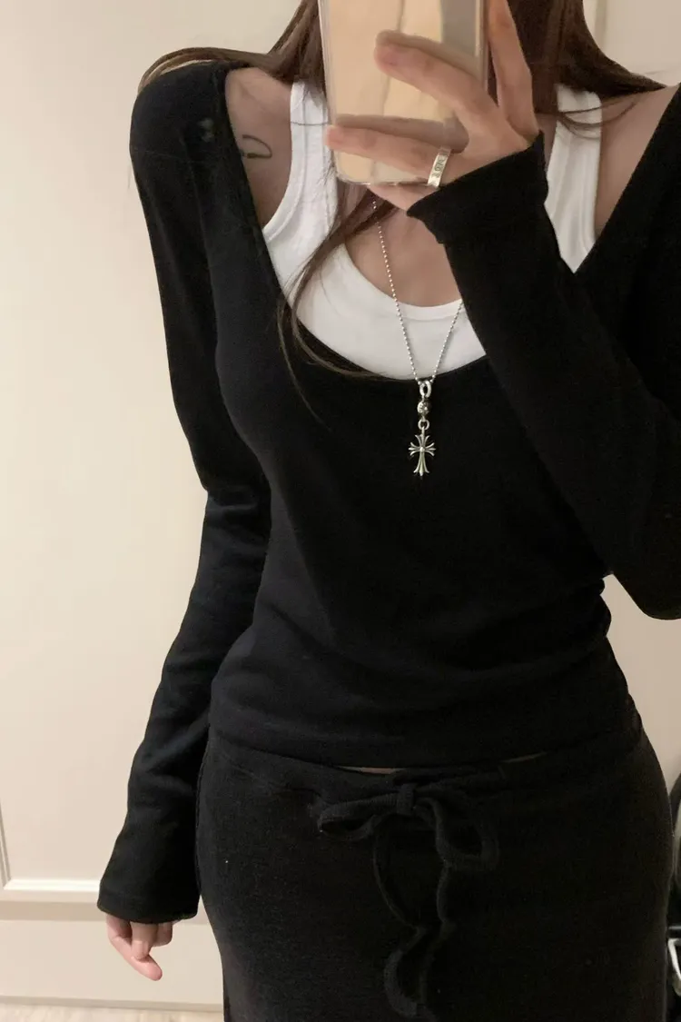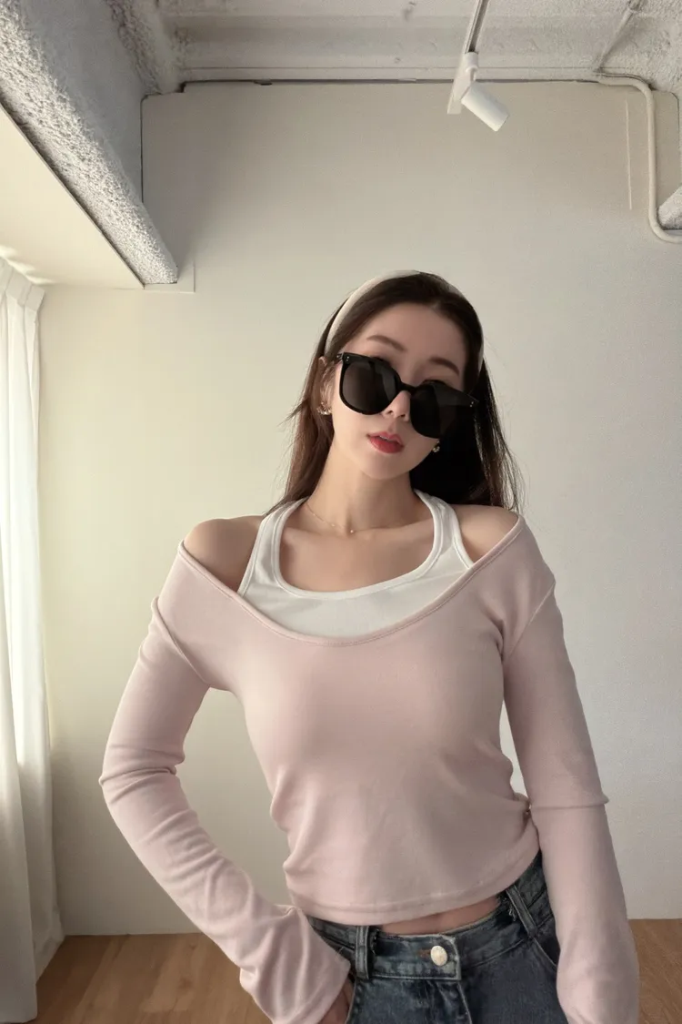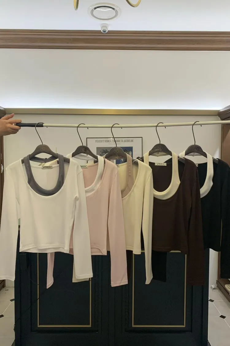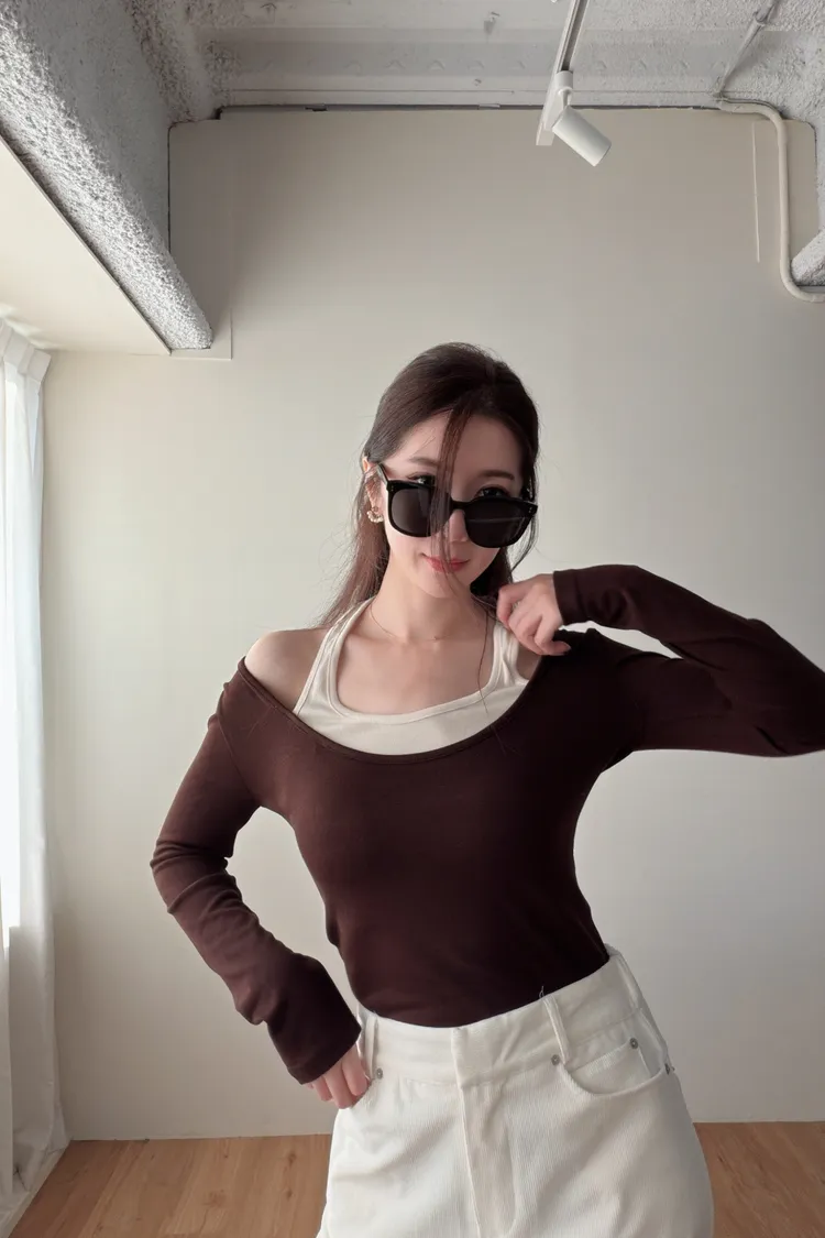 ♥︎ 11月韓國連線 ♥︎ 假2件撞色一字領上衣