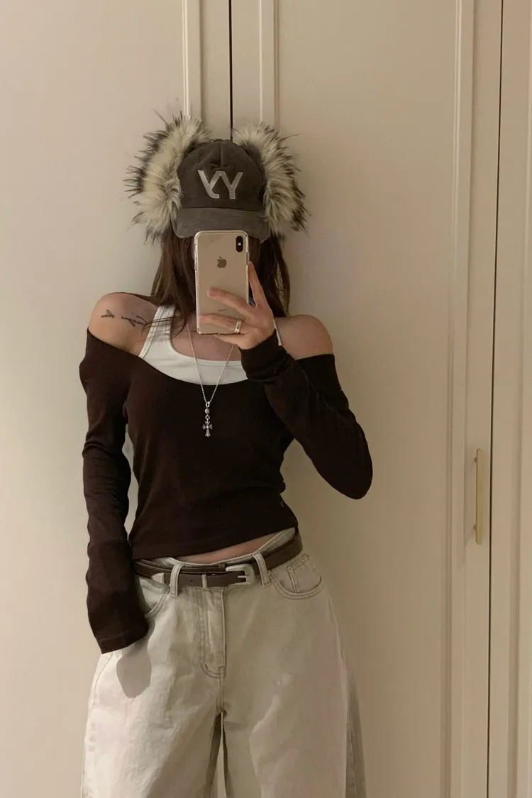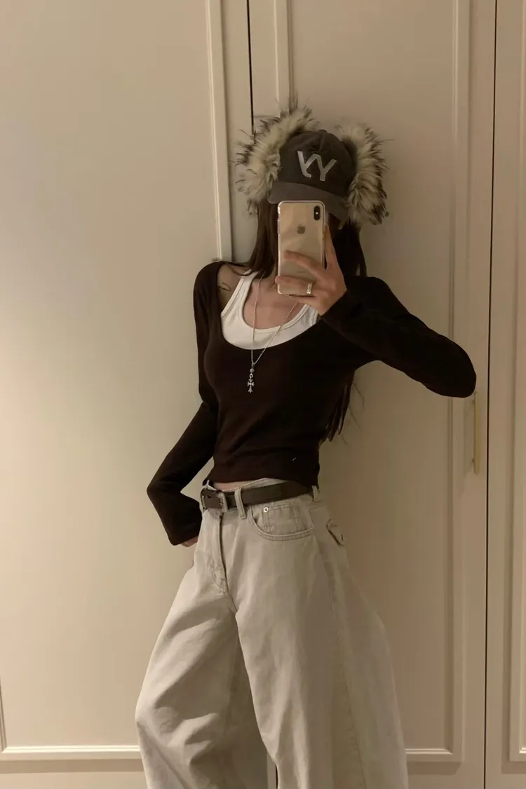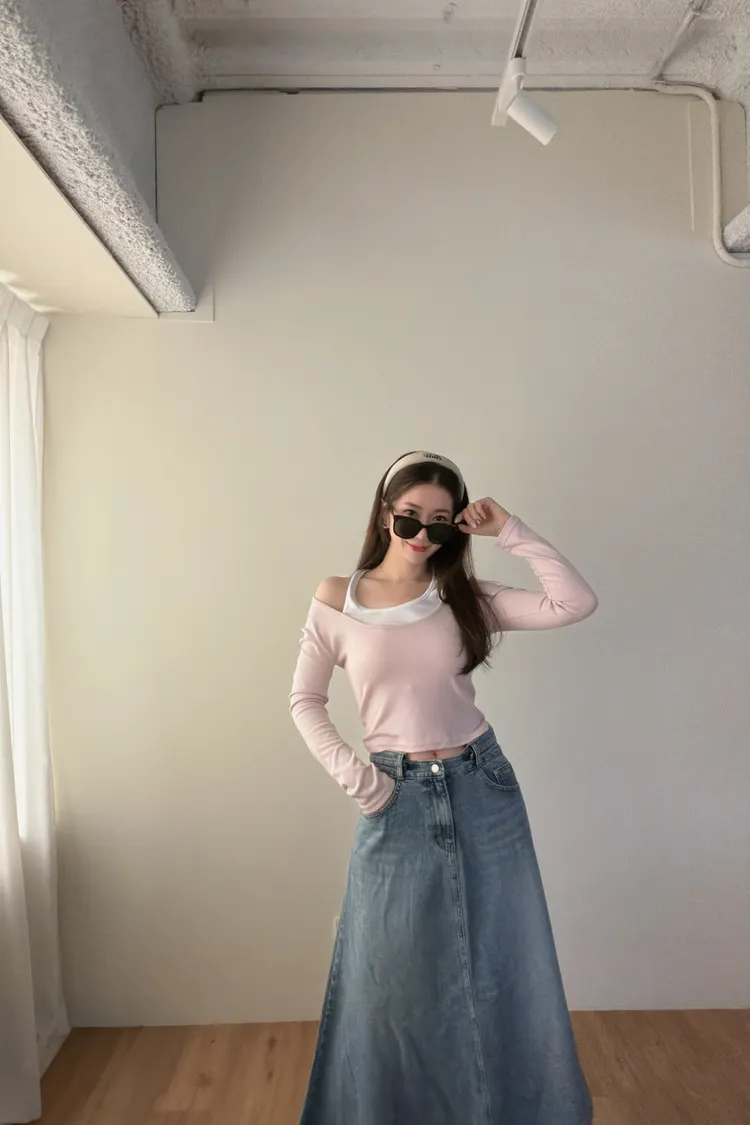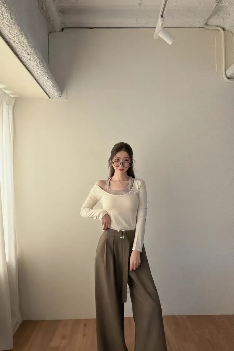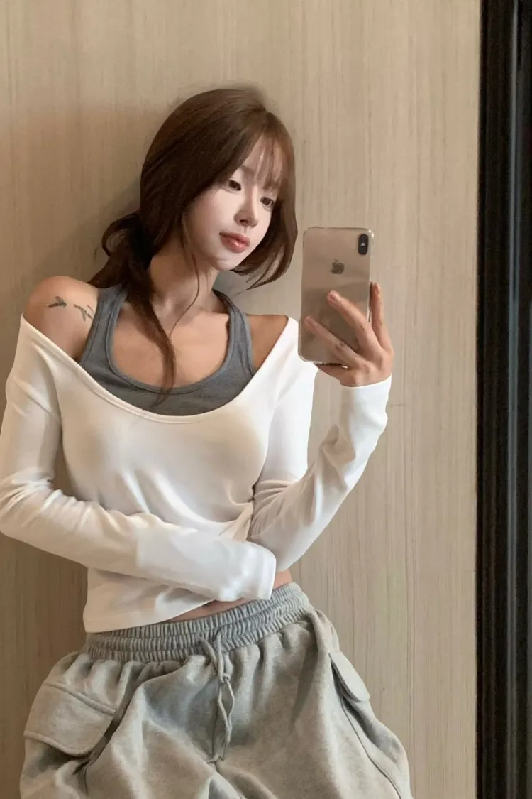 ♥︎ 11月韓國連線 ♥︎ 假2件撞色一字領上衣