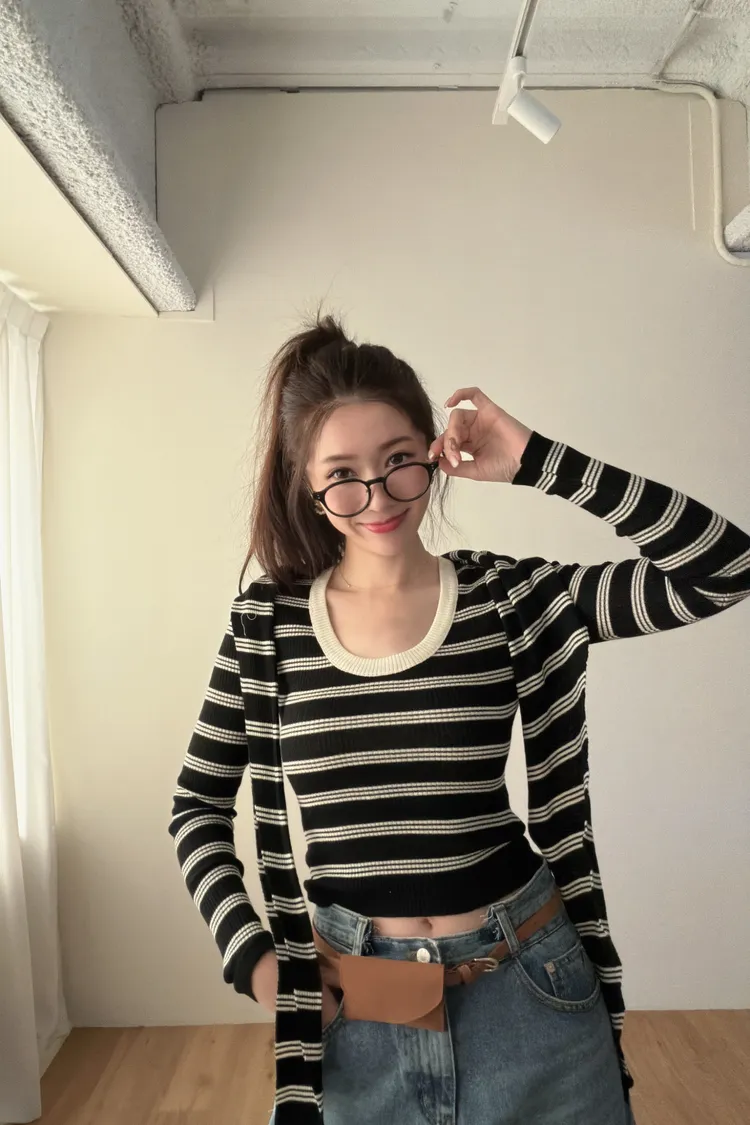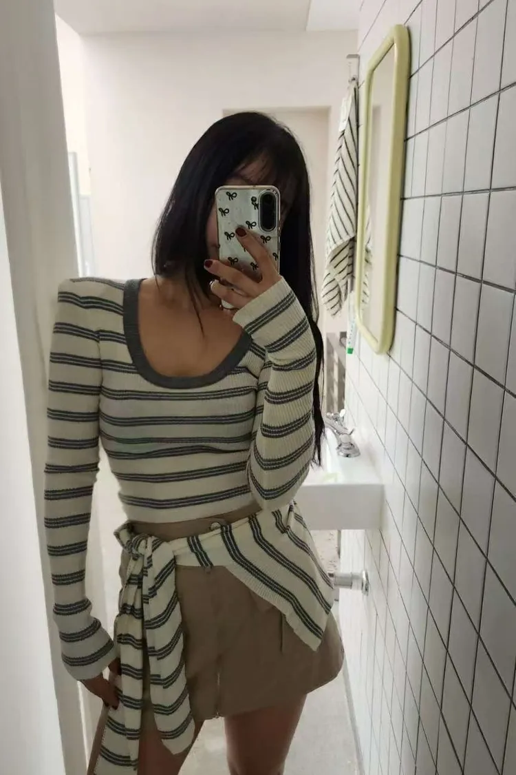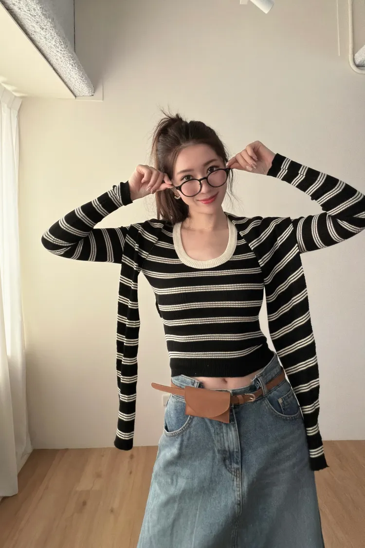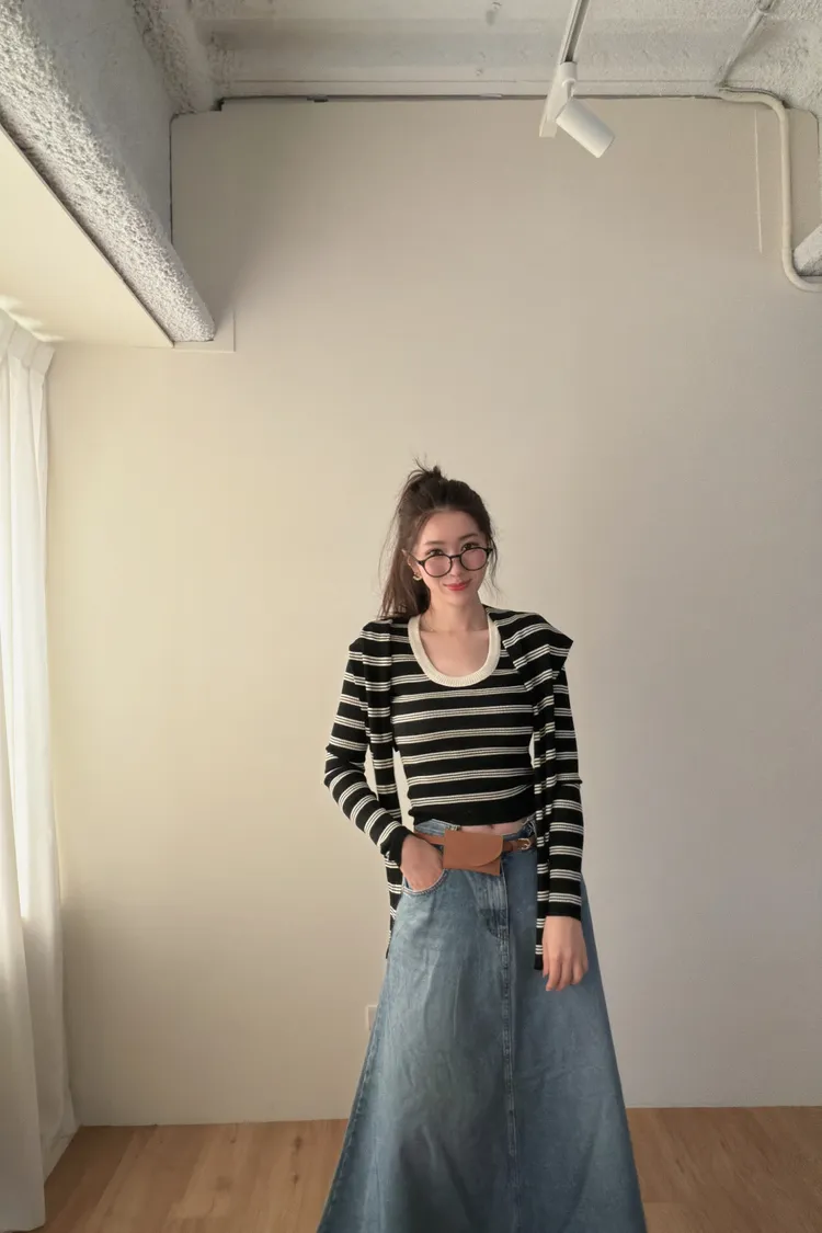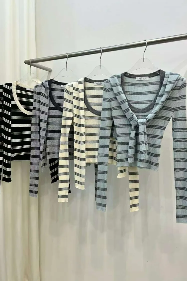♥︎ 11月韓國連線 ♥︎ 2件式條紋披肩上衣