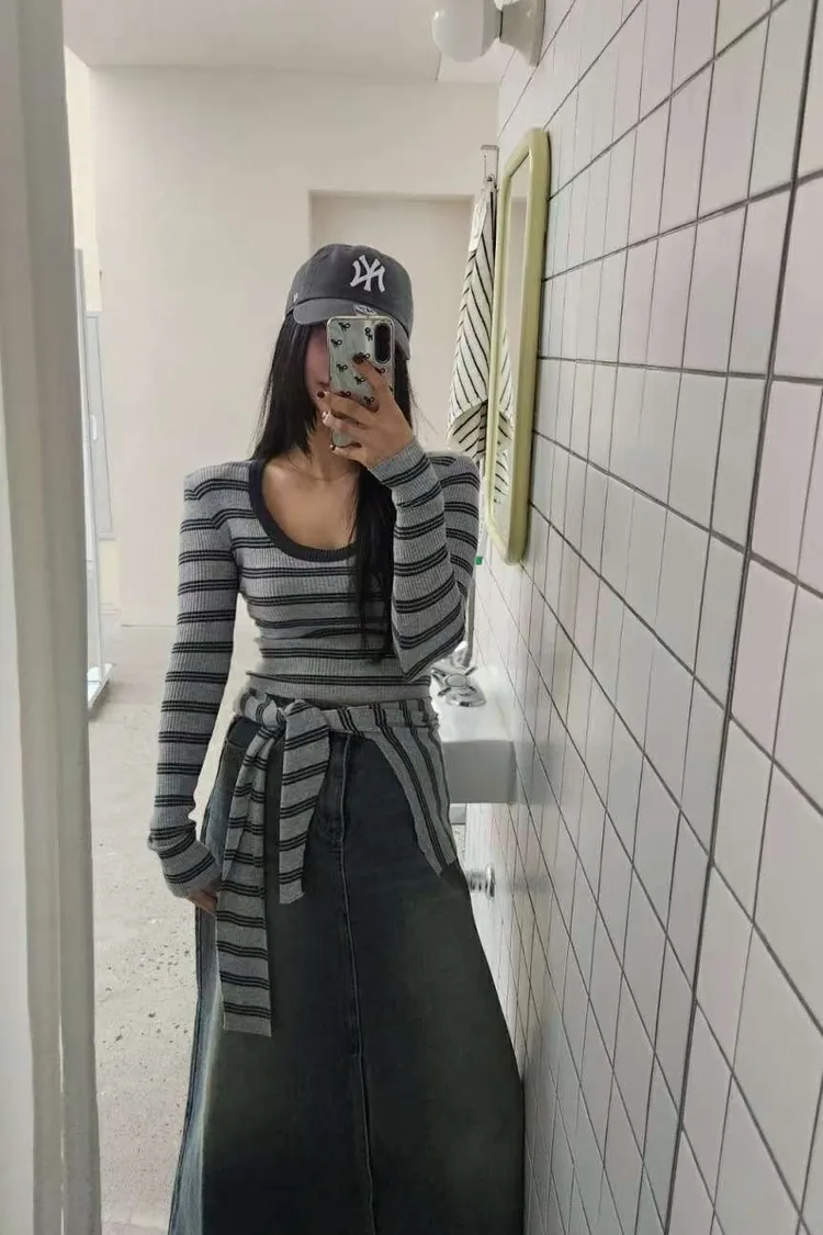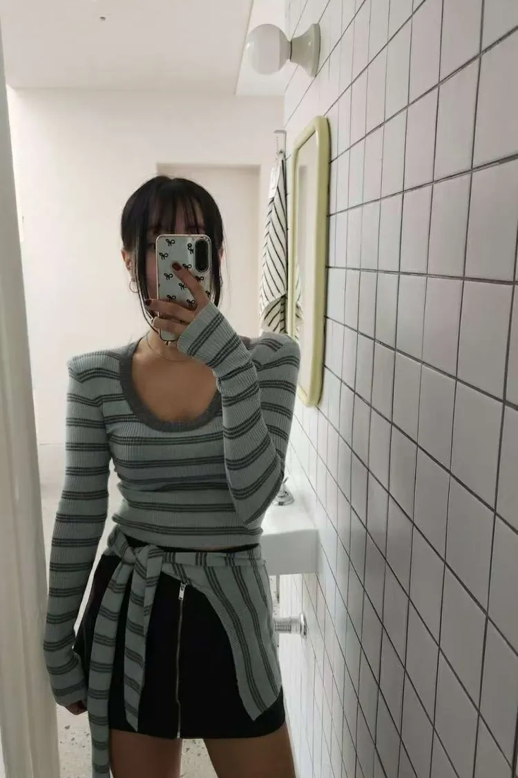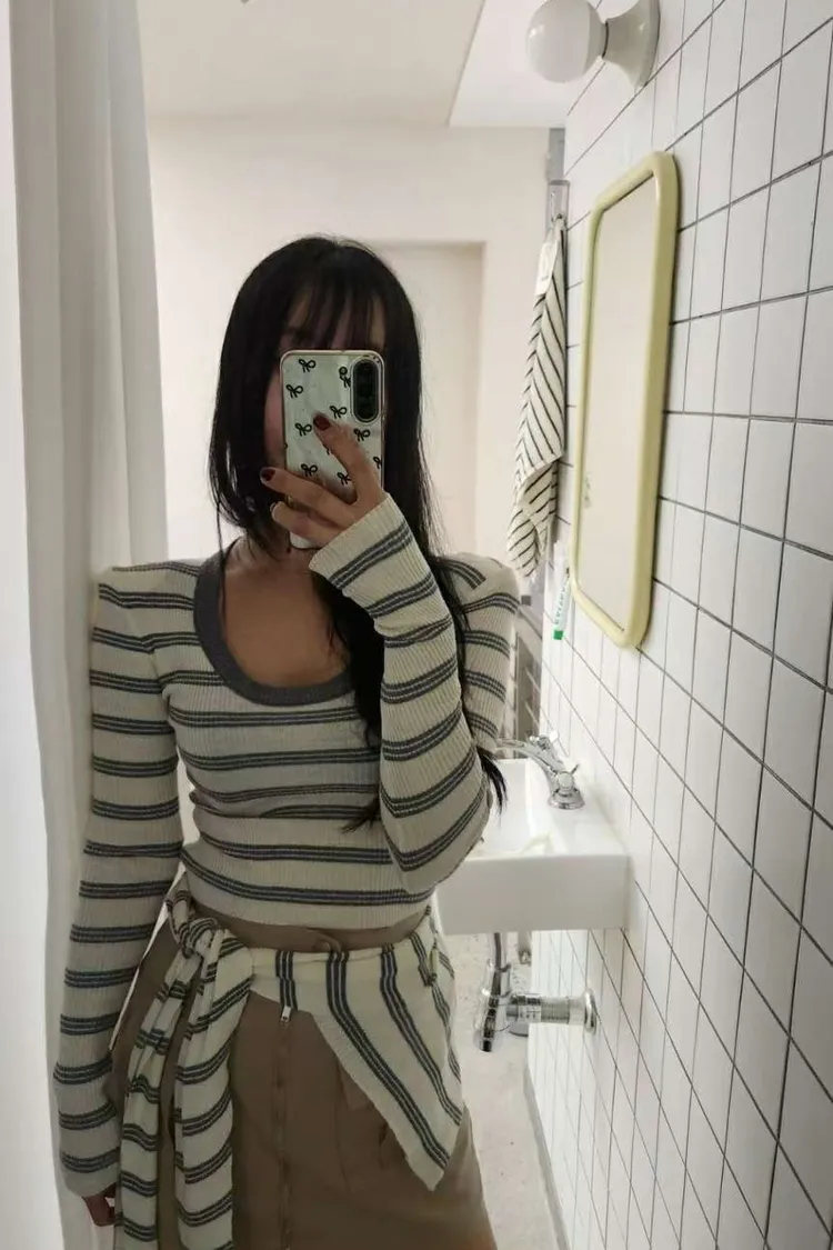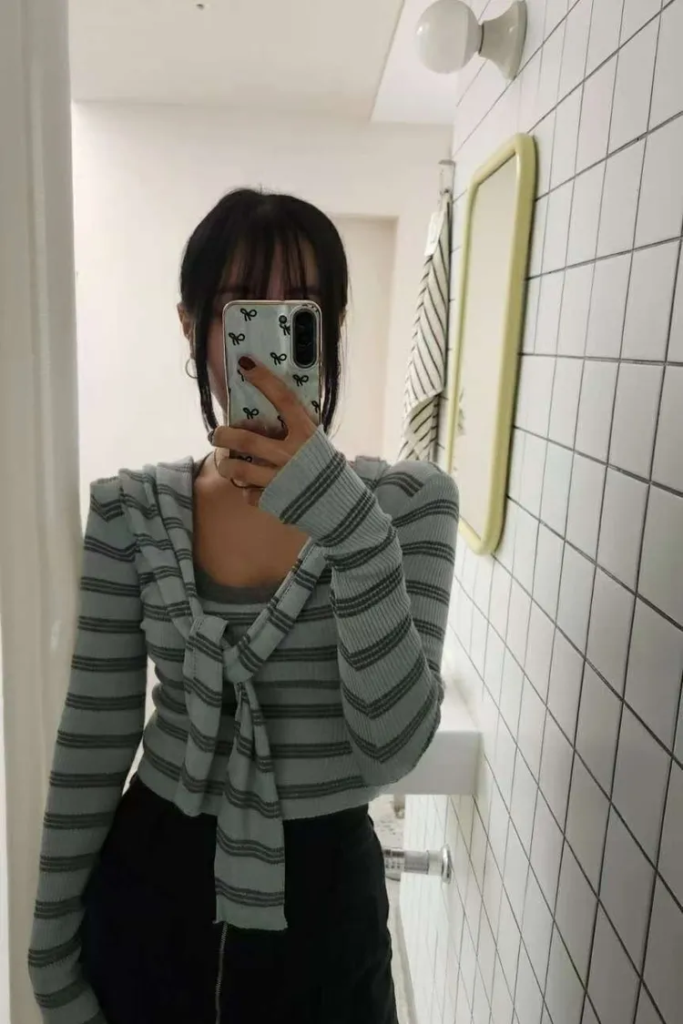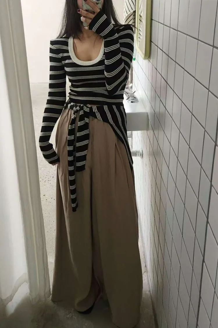 ♥︎ 11月韓國連線 ♥︎ 2件式條紋披肩上衣