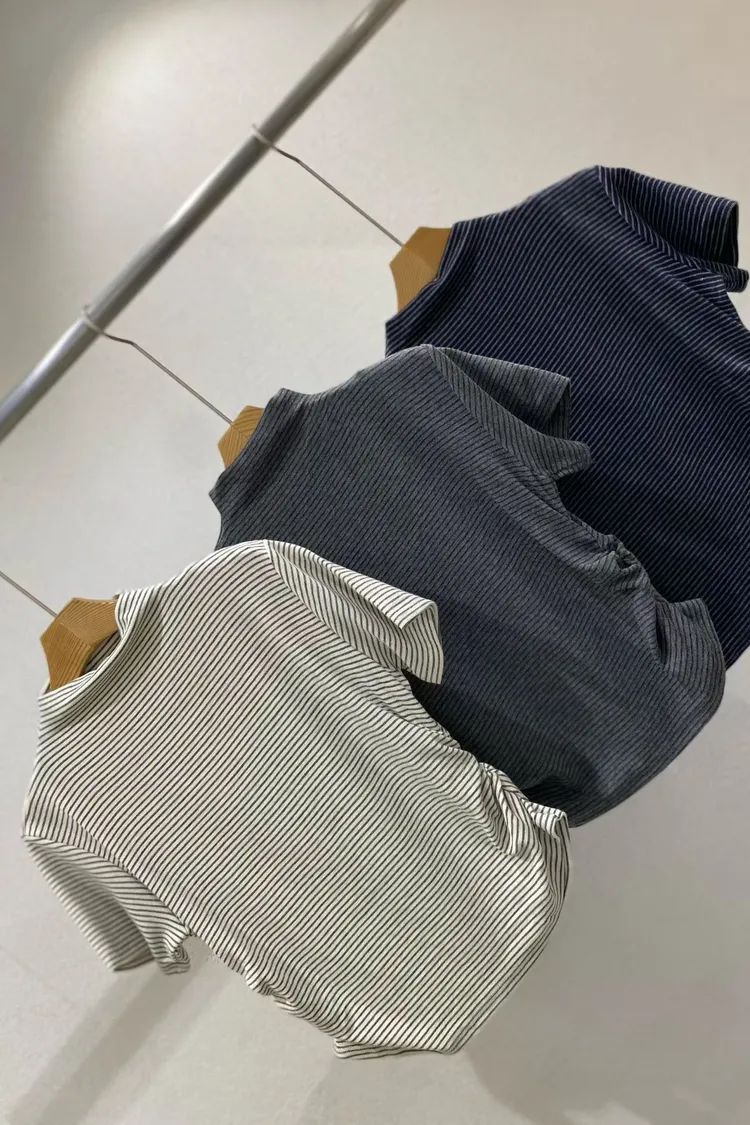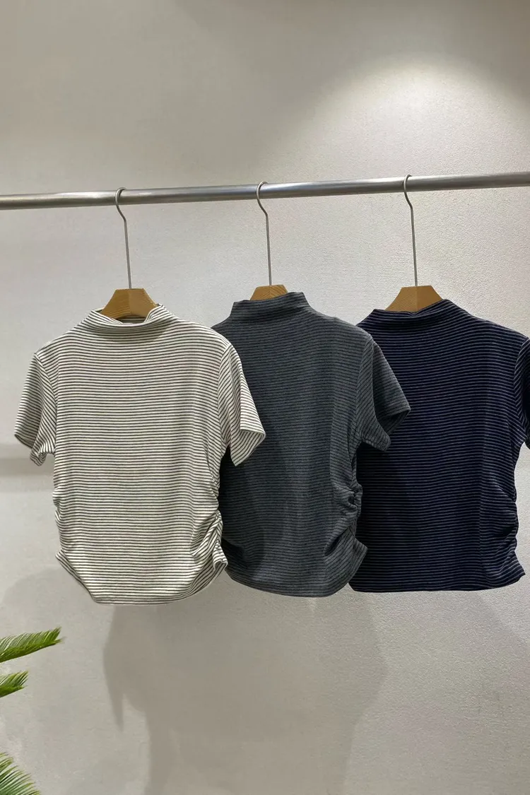 ♥︎ 11月韓國連線 ♥︎ 立領細條紋短袖上衣