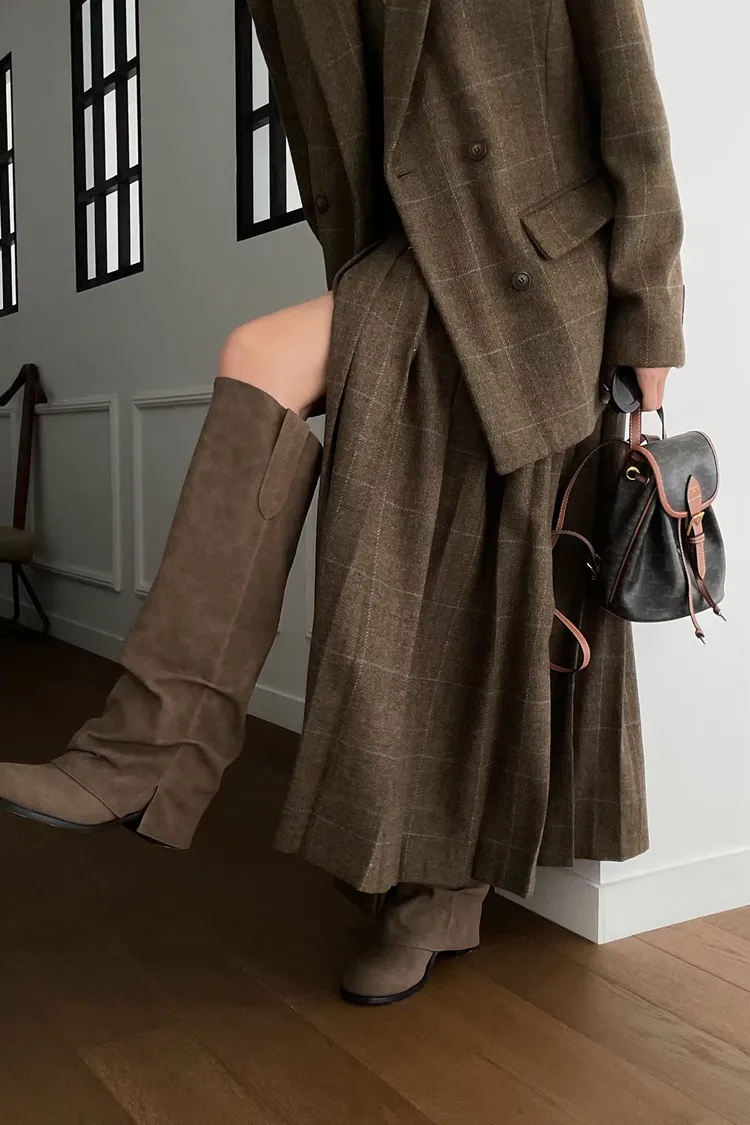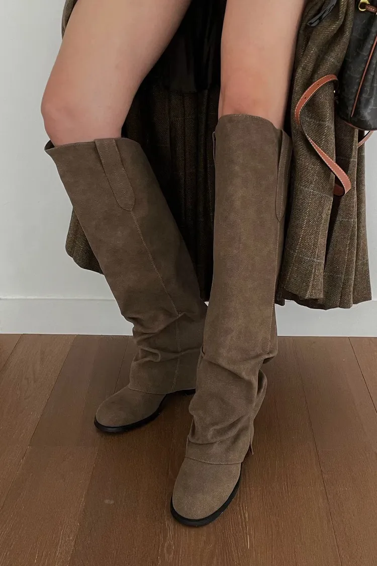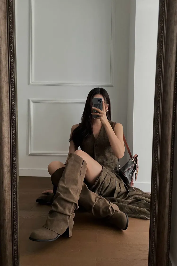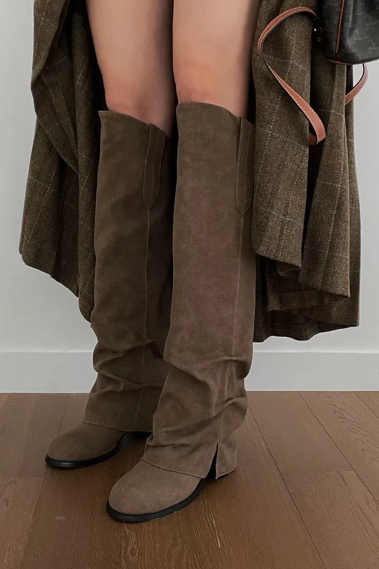♥︎ 11月韓國連線 ♥︎ 前長後短斜口麂皮長靴