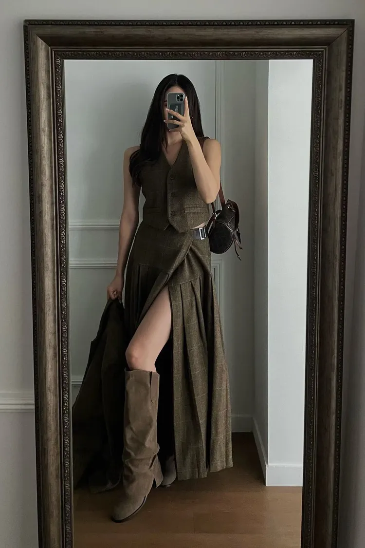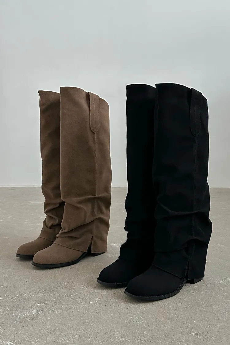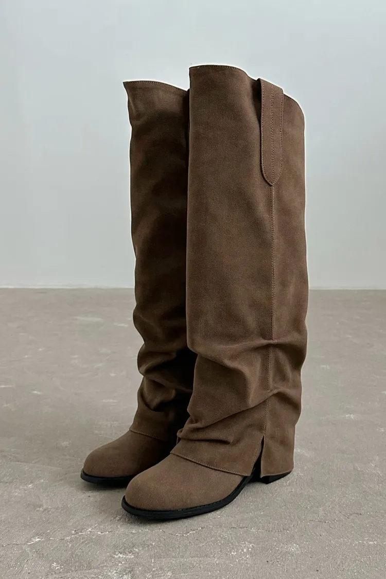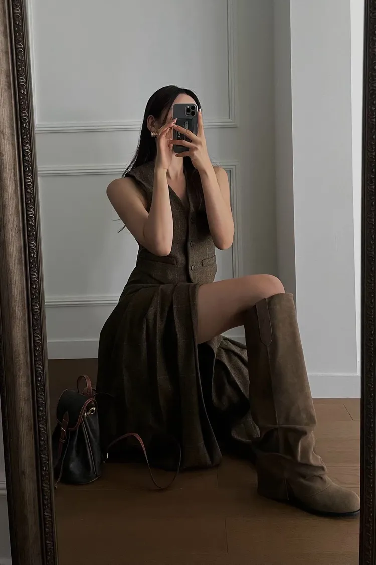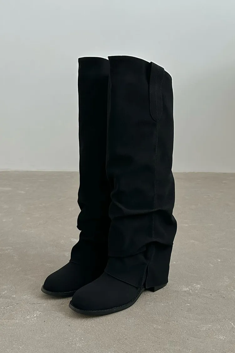 ♥︎ 11月韓國連線 ♥︎ 前長後短斜口麂皮長靴