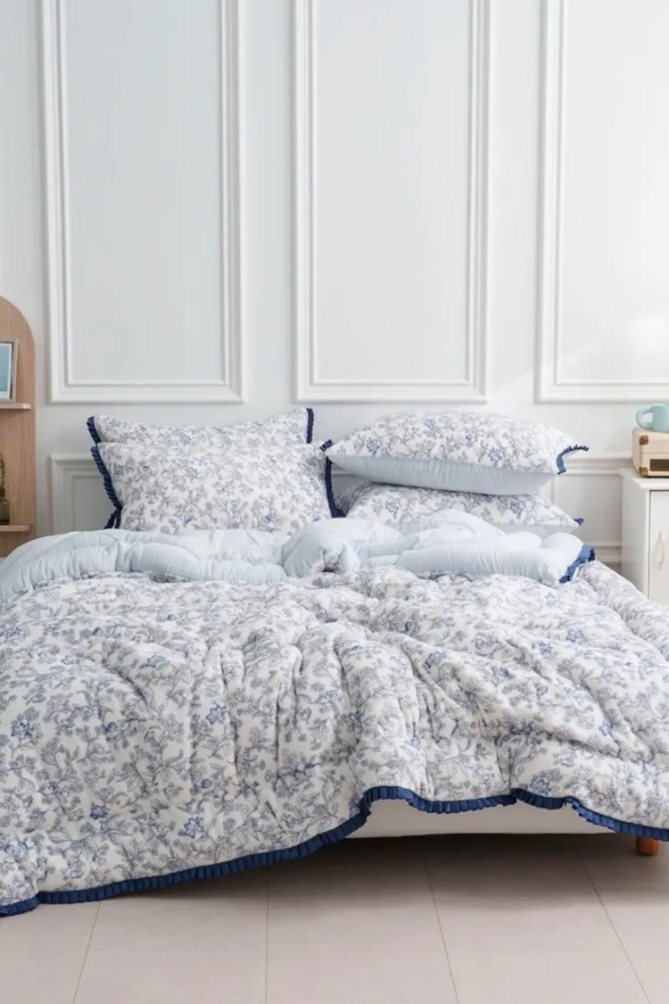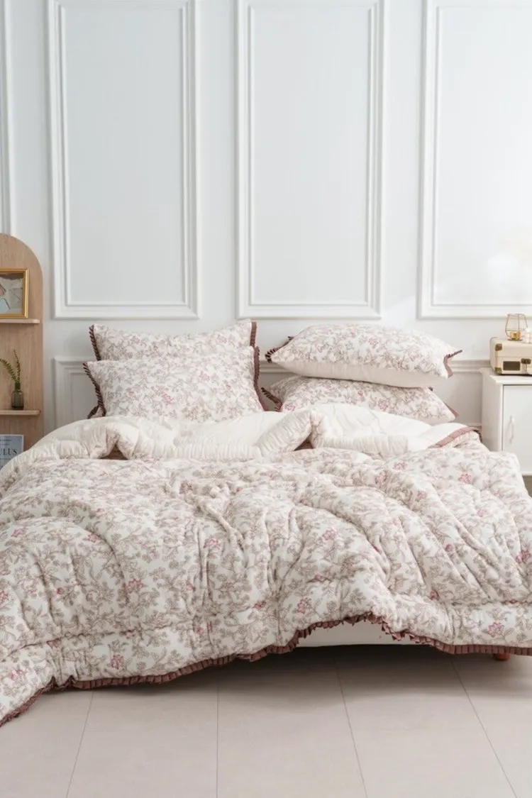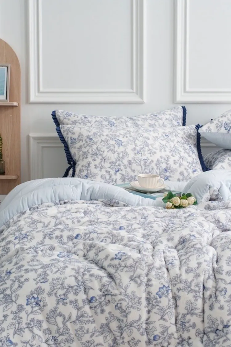◾️ 法式緞帶花邊花園兩用被(一面天絲一面絨毛)